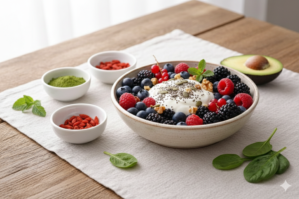 Kluczowe składniki odżywcze wspierające młody wygląd i zdrowie metaboliczne.